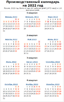 Производственный календарь на 2022 год при пятидневной рабочей неделе